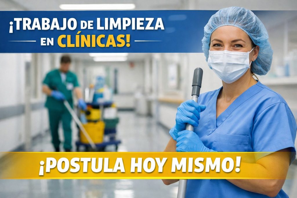 Si estás buscando un trabajo de limpieza en clínicas que te brinde estabilidad laboral, ingresos constantes y la oportunidad de formar parte del sector salud, esta es tu mejor oportunidad. El empleo de limpieza en clínicas es una alternativa ideal tanto para personas con experiencia como para quienes desean iniciar en el mundo laboral, ya que muchas empresas ofrecen capacitación y horarios accesibles.