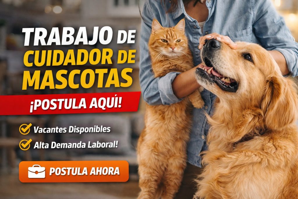 Postula hoy mismo al trabajo de cuidador de mascotas y forma parte de un sector en crecimiento, ideal para quienes aman a los animales y buscan una oportunidad laboral estable y flexible.